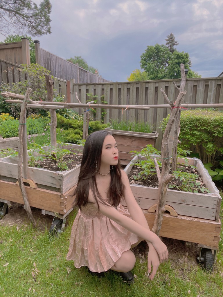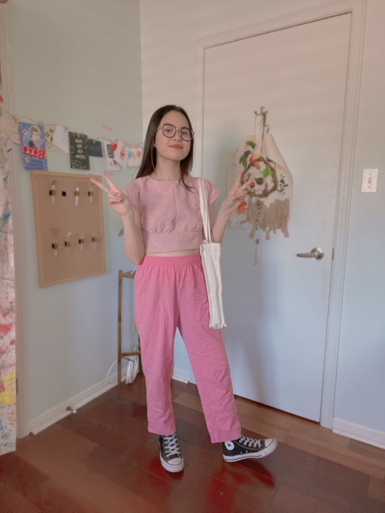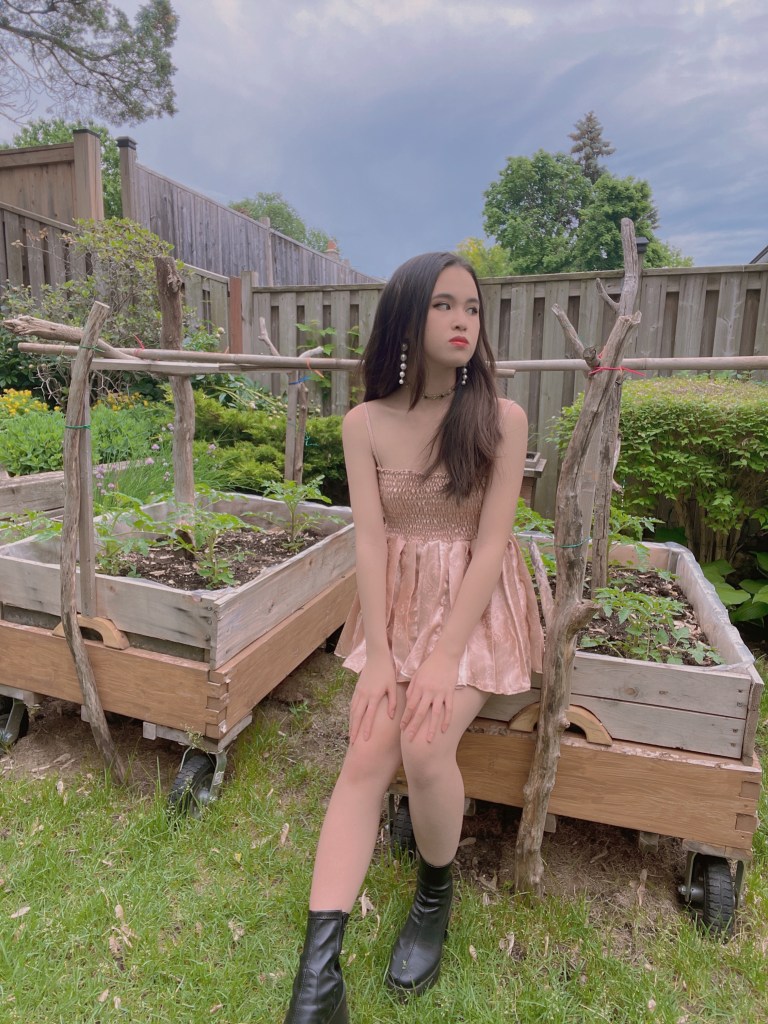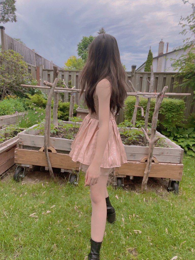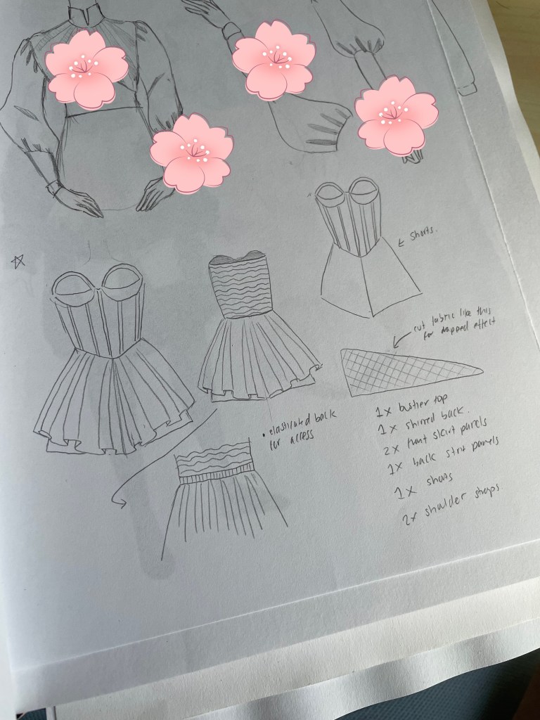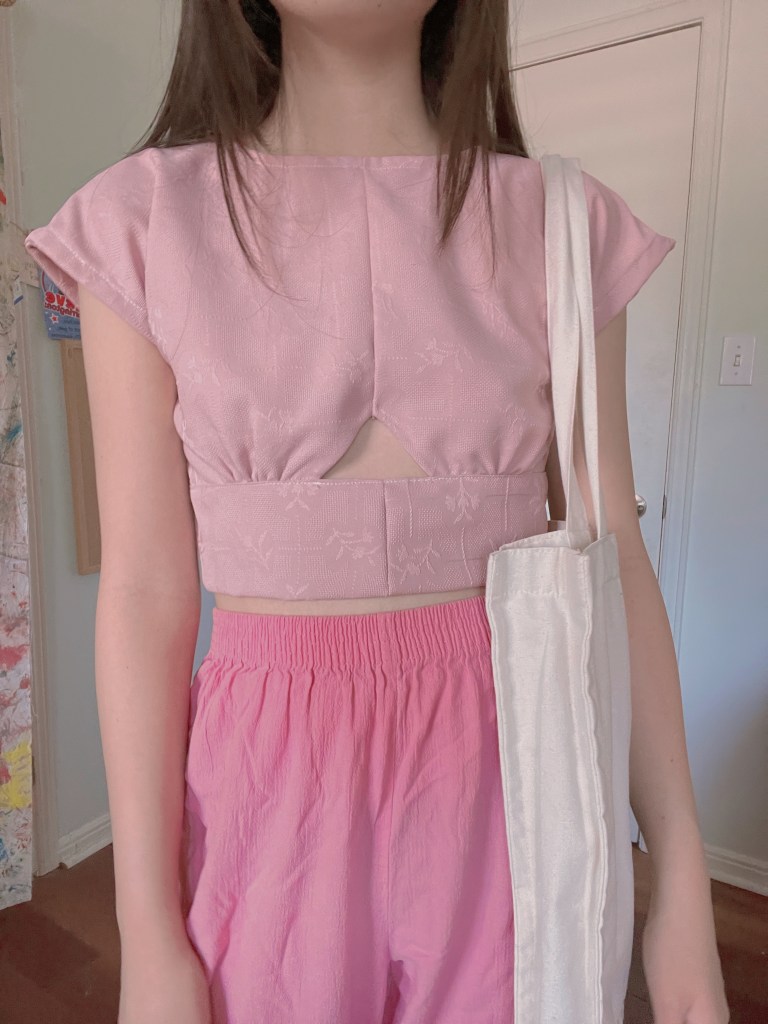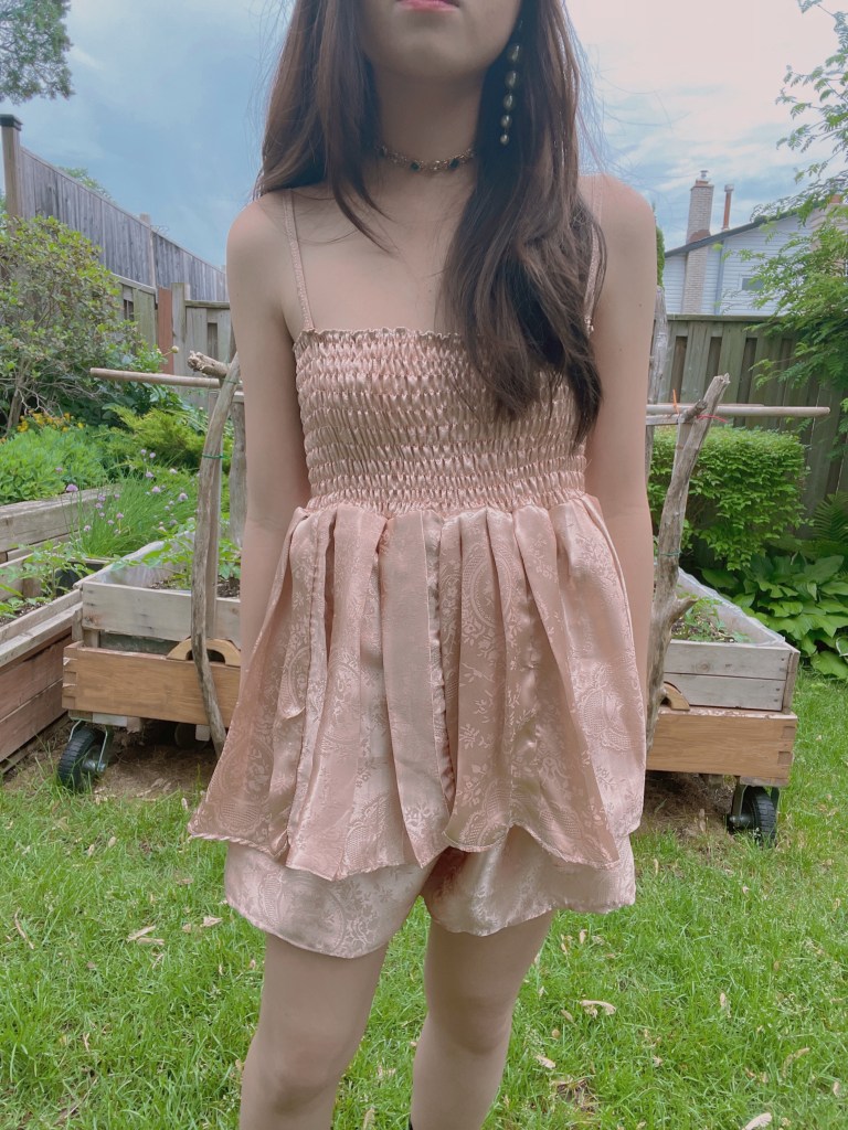 Next up, I wanted to tackle the Paris Georgia Singlet top. This proved to be rather detail-oriented, as it was quite difficult to nail the heart neckline as I was sewing the bias in. Additionally, I wasn’t keen on buying special fabric for this project, given that I wanted to reduce the amount of material I had on the backlog. The best that I could do was black satin, meaning that I needed to add in darts to ensure the perfect fit. Since the fabric offered no stretch, I decided to opt for shirring again in place of a zipper. The end result gives me mixed feelings, as it’s not totally on point with the real Paris Georgia top, but it does bear a slight resemblance.