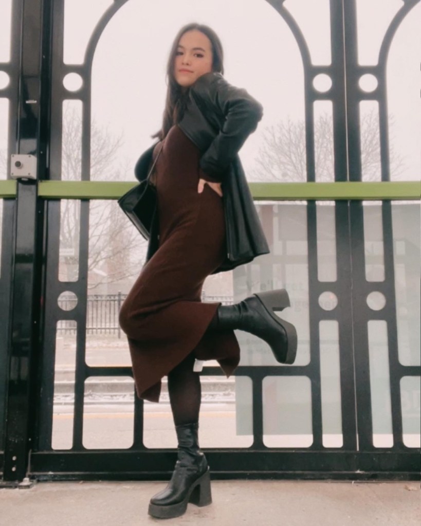 Unfortunately, with the blowing winter winds, opting for a summer dress wasn’t something worth considering. I could’ve insulated myself with a turtle neck and fleece-lined tights, but I knew it wasn’t going to be enough. Plus, I’ve done it before and I hated how stiff it felt. Luckily, I chanced upon this gorgeous sweater dress from Oak + Fort. Paired with my ASOS boots and my mom’s old leather jacket, I think this look provided a needed touch of modern contemporary in the dead of winter. Oh, I was still cold, but there’s only so much you can do if you’re attending a ballet.