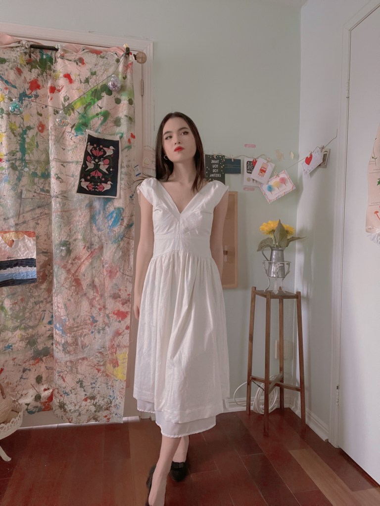 Yes, I’m fully aware that I have wayyy too many dresses in my closet. After getting my hands on more clothes hangers this weekend, I was surprisingly shocked about how many summer pieces I own. To be fair, most of them are sewing projects that I’ve made in the past—so I can’t be bare to part with something I’ve spent hours on. You can partially blame Pinterest, the internet central of aesthetically pleasing fashion. I chanced upon this gorgeous v-neck linen dress a couple of days ago and I was super tempted to make a version of my own. But instead of opting for traditional red, I decided to work with creams instead for a more neutral look.